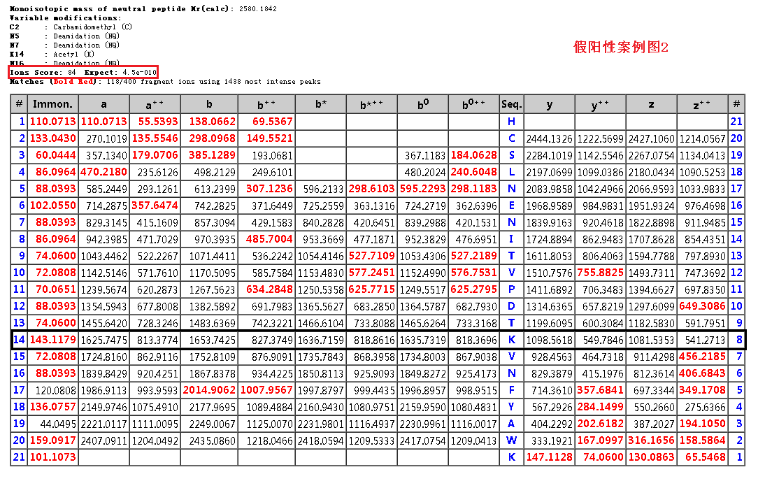 在此,我特贴出几张【串联质谱鉴定乙酰化修饰】的串联质谱相关截图,懂行的,自己琢磨;不懂行的,就记住【假阳性】这3个字,在串联质谱里也是常常遇到的,要仔细甄别。