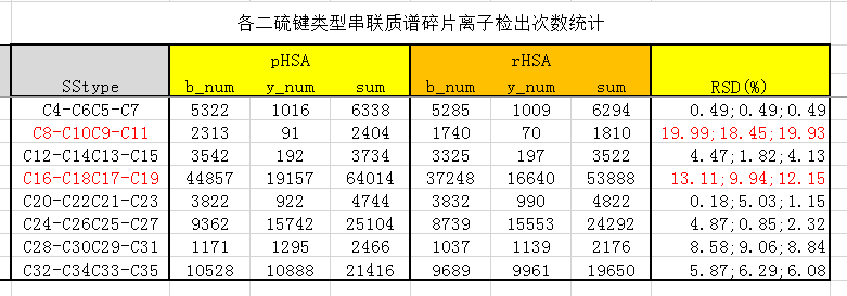 | 【项目进展】【重磅】pHSA与rHSA二硫键MS/MS碎片离子比较 |