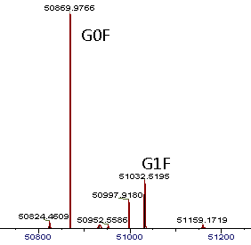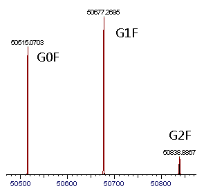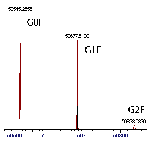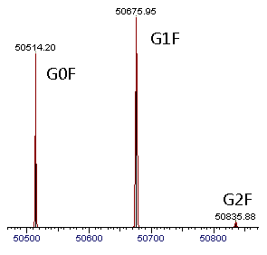 全部是我们检测的。建议大家可以理解的原因,没有给出企业名称、抗体药物名称。 此处只给出重链结果,完整分子糖型更复杂点。 ---------------------- A ------------------------------ ---------------------- B ------------------------------ ---------------------- C ------------------------------ 更多精彩文章,请关注公众号 【药网堂】 All rights reserved , visit the micromessage 药网堂 for more @ tofms_org@126.com